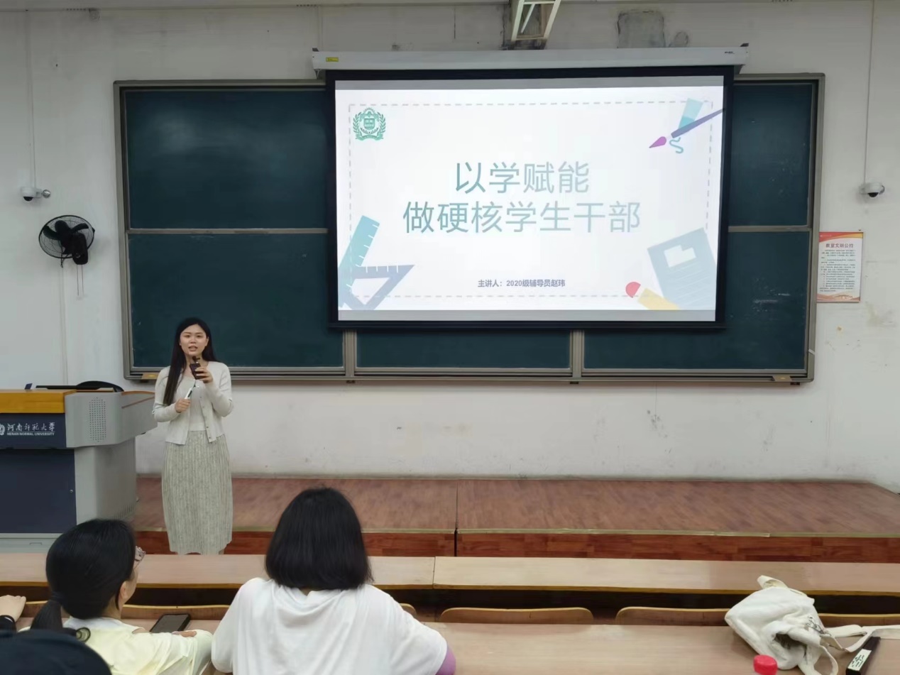 为增强学生干部履职能力,提升学生干部综合素质,培养学生干部核心竞争力,5月10日晚,商学院于求是中楼303教室开展“以学赋能,做硬核学生干部”主题培训。会议由商学院2020级辅导员赵玮担任主讲人,2023级全体学生干部参加本次培训。