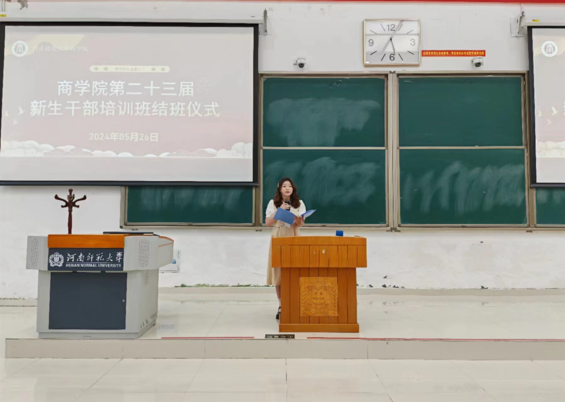 5月26日下午,商学院于文昌楼102教室举办第二十三届新生干部培训班结班仪式,商学院团委负责人郭琛昊、商学院学生会主席团及第二十三届培训班全体学员参加此次活动。