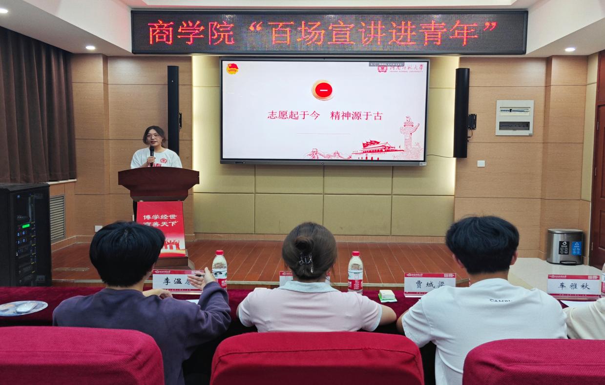 为深入学习宣传贯彻党的创新理论知识,充分发挥青年骨干引领作用,引导广大青年学生积极投身新时代、展现新作为,5月29日晚,商学院举行“百场宣讲进青年,思想先行育良才”青年宣讲会。青年讲师团李妍霏、范镇源和陈卓前来宣讲,商学院部分学生积极参与,认真聆听。