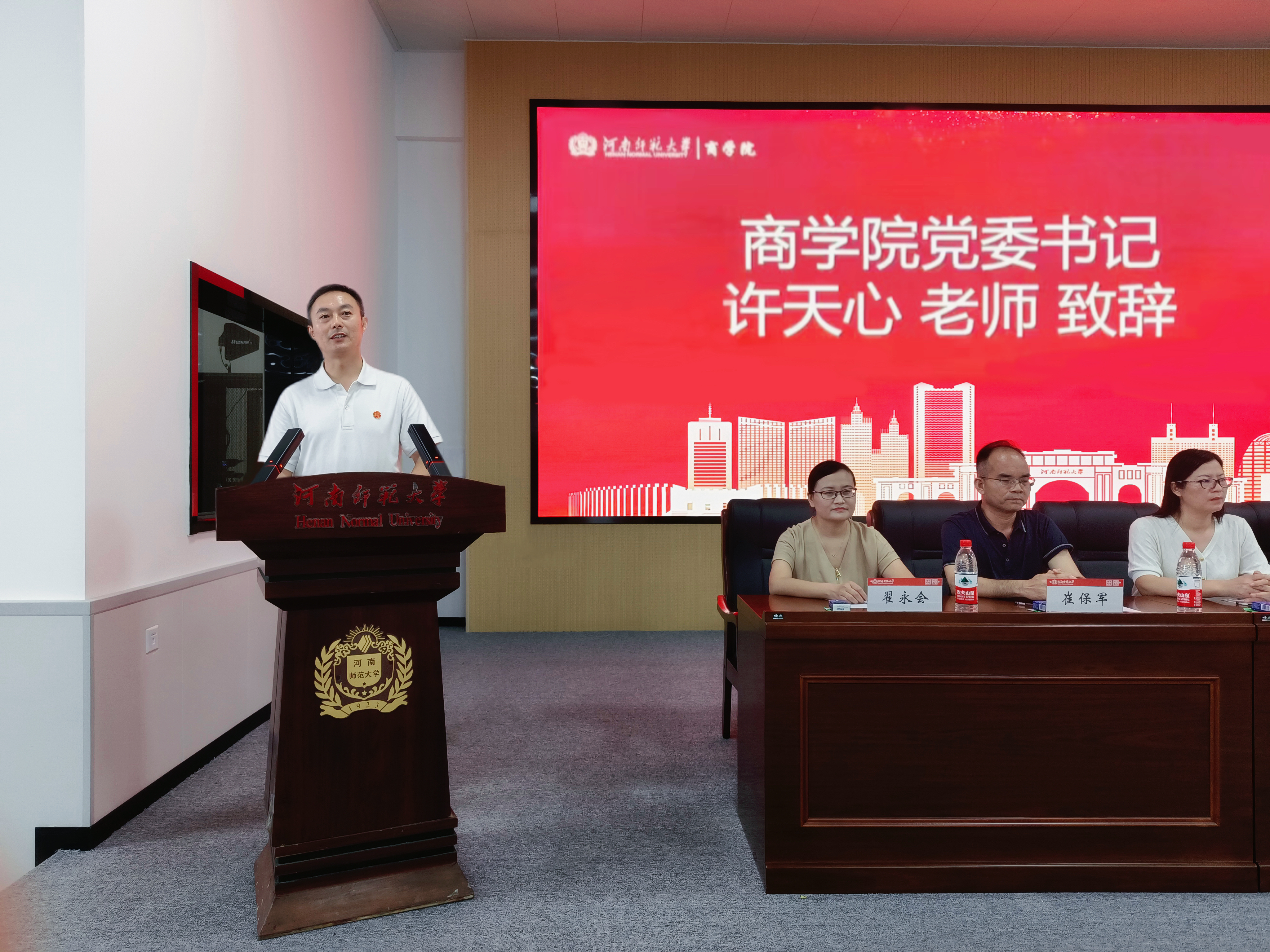 开学典礼在庄严的国歌声中拉开序幕。商学院党委书记许天心发表致辞,对2024级新同学的到来表达热烈的欢迎与真挚的祝贺,并围绕学院发展历程、师资力量、学术成果等方面详细介绍学院教育领域的深厚底蕴和独特优势。随后,他对新生给予期许,希望同学们以学业为本、勤勉坚韧,端正学习态度,掌握学习方法,筑牢知识基础,积极由被动学习向主动探索转变;在生活中自律自省、包容开放,既要培养定力和远见,理性面对思想和行动上的抉择,也要包容理解,互相尊重,与同学和谐相处;在未来发展中脚踏实地、知行合一,积极参与学校、学院组织的各项实践活动,为职业规划锚准目标、找准定位、精准方向。