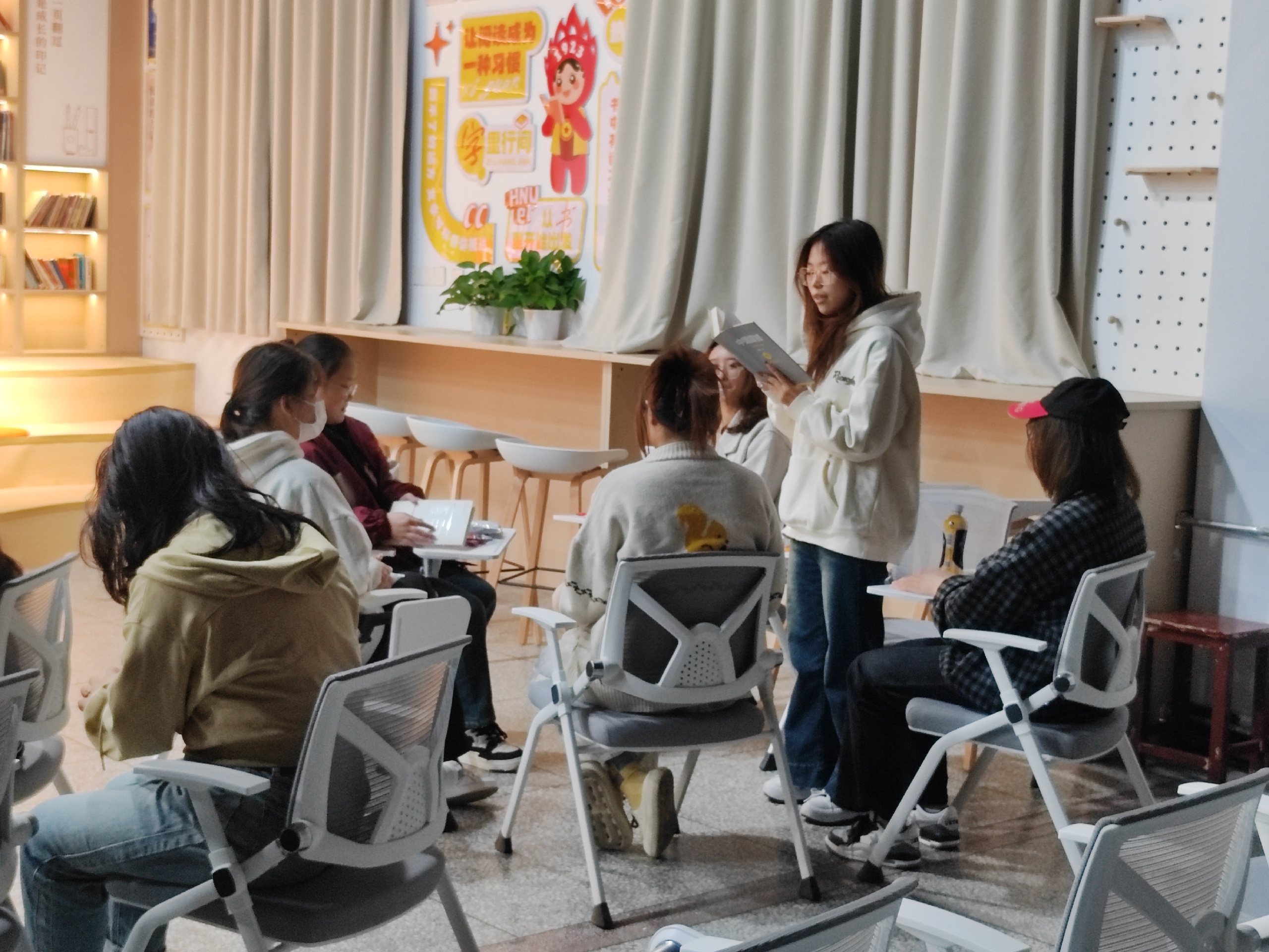 本次活动采取线上线下相结合的方式进行,活动内容丰富,形式灵活。在读书打卡活动中,同学们每日上传阅读摘抄,抒写心得体会。一句句摘抄意蕴深远,展现出同学们的丰富知识和深刻哲思;一篇篇感想情深意切,彰显出同学们对阅读的赤诚热爱和执着坚守。在阅读交流会活动中,同学们扮演“好书推荐官”上台分享,以演讲形式全方面展现书籍之美。随后,同学们以小组为单位展开讨论,并推举代表上台进行发言汇报。发言人言辞合理,逻辑清晰,从不同视角对书籍进行解读,深入鉴赏和探讨经典著作,带领同学们共同体会作家广袤深邃的精神世界,于书海中自由徜徉。在名著知识问答活动中,同学们踊跃举手,在极短的时间里快速而准确地回答问题,碰撞出热情与智慧的火花,展现出同学们丰富的知识储备和敏捷的思维能力。活动结束后,2023级工商管理专业汪文佳感慨道:“这次活动让我感受到阅读的重要性,今后,我要在生活中多读书,读好书,在阅读中修身养性,增长才干,成就灵魂的自由丰盈和生命的无限精彩。”
