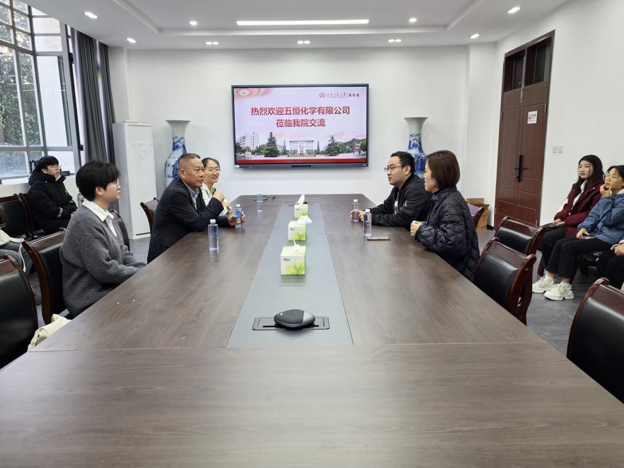五恒化学有限公司相关负责人围围绕“发展历程”“企业文化”“发展战略”三个方面详细介绍企业的公司结构、主要业务、员工培养、薪酬体系以及招聘要求,充分展示出企业的核心竞争力和市场潜力。他谈到,企业将贯彻“人才兴企,人才强国”理念,与学院保持长期良好合作关系,以人才带动创新,以创新赋能产业,推动整体社会的进步与发展。此次交流会双方达成共识,访企拓岗促就业”专项行动取得圆满成功。