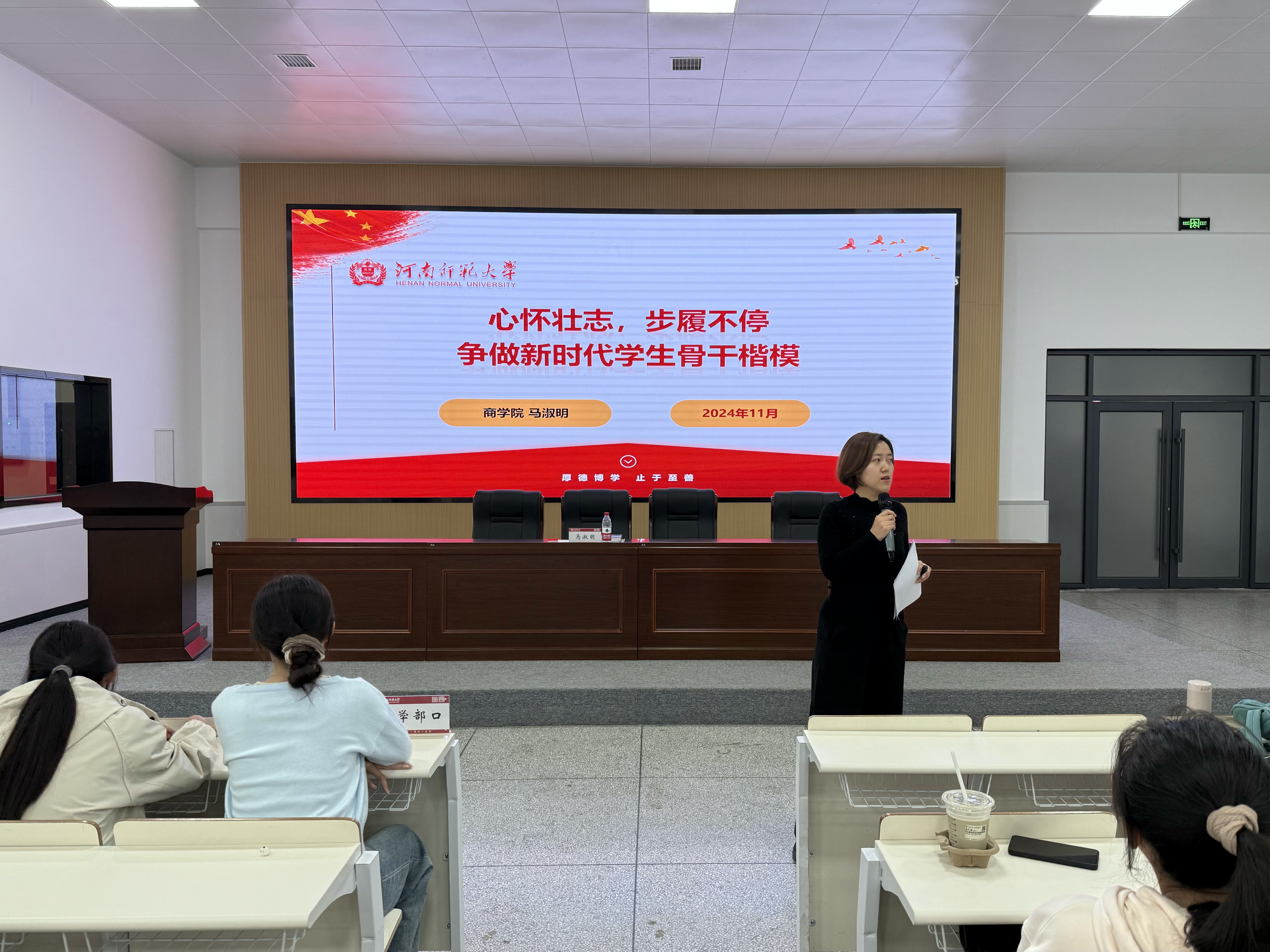 为提升学生干部的核心素养和综合能力,培养新时代团学骨干,11月3日下午,商学院于人餐厅三楼道德讲堂举行学生干部经验交流会。商学院党委副书记马淑明担任主讲,商学院全体学生干部参加本次会议。
