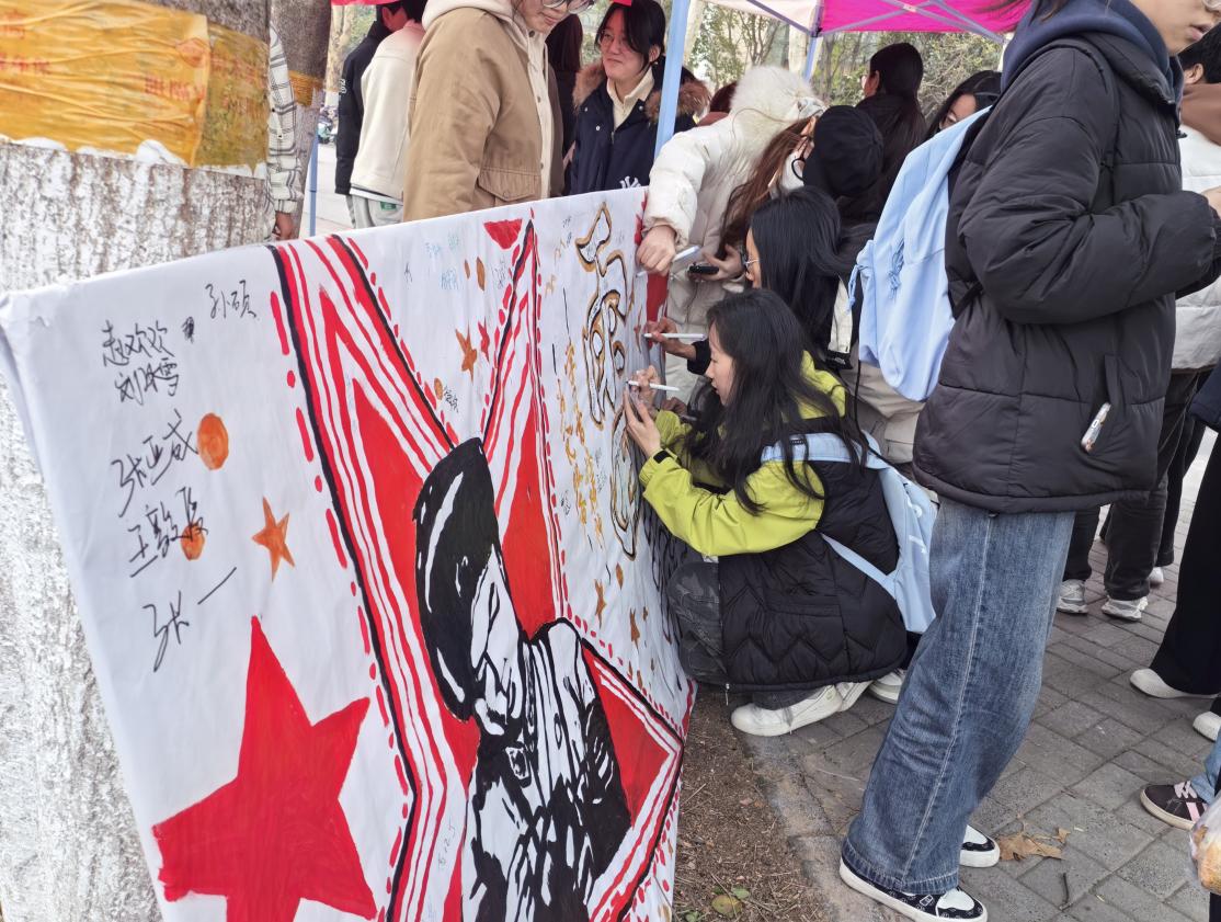 活动现场,志愿者们身着统一服装,分工明确、各司其职,以积极饱满的精神状态投入到各自的志愿服务岗位。在绿化带区域,同学们手持清扫工具,弯腰埋头苦干,对落叶、纸屑及细小垃圾进行了全面而细致的清扫。在校园主道附近,同学们共同维护交通秩序,合理引导校园车辆规范停放、有序通行,极大缓解了道路交通拥堵现象,充分保障了师生道路通行安全。在校园服务站点内,志愿者们细心放置饮用水、压缩饼干和紧急药品等物资,为师生提供热心帮助和贴心服务,以实际行动落实雷锋精神,传递温暖和关怀。同时,学院学子制作并分发雷锋精神活动宣讲册,深入宣传雷锋的生平事迹、精神内涵及践行之道,引导学生深刻理解雷锋精神,并将其内化于心、外化于行。
