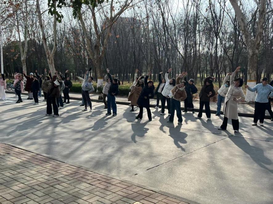 活动伊始,商学院工会主席马淑明向全体女教职工致以节日问候。她高度赞扬女教职工在学科建设、教学科研、学生培养等领域的卓越贡献,希望女教职工提振精神、乘势而上,弘扬时代新风,贡献巾帼力量。同时,她特别提醒教职工们在活动中科学热身、量力而行,确保活动安全有序进行。随后,老师们精神抖擞地自由列队,舒展身姿,铿锵有力的步伐彰显出朝气蓬勃的昂扬风貌,整齐划一的动作展现出锐意进取的团队精神,明媚昂扬的笑靥辉映出躬耕教坛的赤诚初心。老师们刚柔并济的风采,不仅展现了新时代女性的自信与活力,更镌刻出踔厉奋发、踵事增华的集体印记。