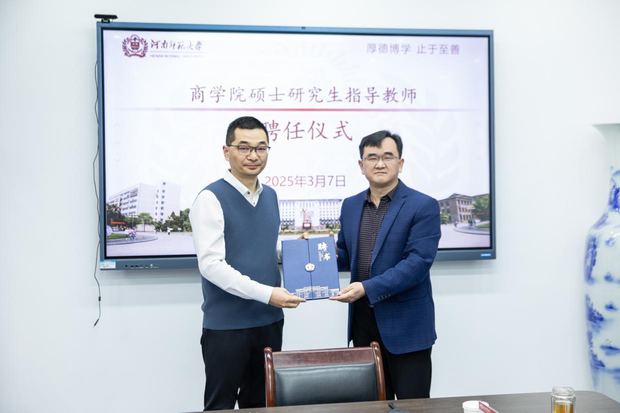 本次活动由许天心主持。活动伊始,许天心对企业一行的到来表示热烈欢迎和衷心感谢。随后,刘英基为王威和李宁颁发MBA硕士校外导师聘书,并详细介绍商业英才实验班运行情况和基本项目,强调院企合作是培养兼具扎实理论知识与丰富实践经验的商业人才的必由之路,期待院企双方深度合作,全方位整合和化化资源,共同开创教育与产业互利共赢的良好局面。王威和李宁代表企业进行发言,深入剖析商业领域对多元化高素质人才的迫切需求,鼓励学生积极投身于真实的商业实践场景,在实践中提升综合能力,为未来职业发展筑牢根基。会议结束后,院企双方于综合实训楼实践基地进行实地参观,企业一行参观了跨境运营室、直播间及培训室,并就寻找新型合作增长点、完善合作质量评估机制等方面对实践基地后续发展提出宝贵建议。最终,院企双方达成一致共识,本次活动圆满结束。