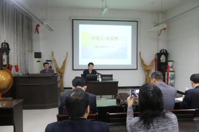 徐永富教授作了题为“中国人 中国梦”的学术报告。徐永富教授在讲座中运用大量历史事实、数据,从溯源中国梦、现代中国梦、直面中国梦、实现中国梦四个方面详细解读了中国梦。他从三个方面:近代中国的天朝太平、富国强兵、学西革新来溯源中国梦;从现代中国的“两个一百年”(建党一百年和建国一百年)和四个阶段(富国强兵、改革开放、全面小康和中等发展国家)来阐述现代中国梦;从时代价值、国际意义、基本内涵来直面中国梦;最后阐述了实现中国梦的实现路径。