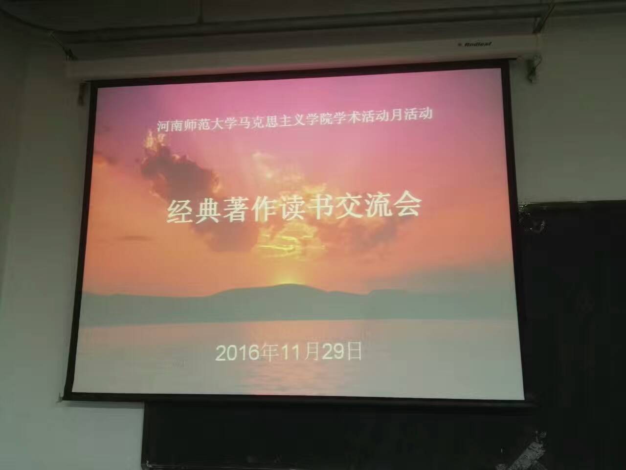 11月29日晚上在马克思主义学院102教室正式举行2016级以“阅享经典,伴我成长”为主题的经典著作读书交流会第一期,闫立超老师、冯思淇老师和2016级全体研究生都准时到场参加,这次给我们分享经典著作交流的是杨月、上官楚瑜和张金星,交流会由王婧宇主持。