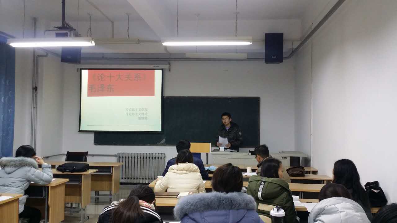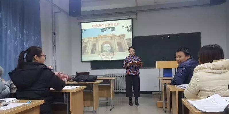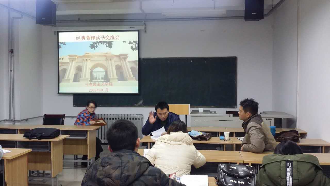 2017年1月5日晚上在马克思主义学院102教室举行以“阅享经典,伴我成长”为主题的经典著作读书交流会第二期,王军魁教授和冯老师,闫立超老师,冯思淇老师和2016级全体研究生都准时到场参加,本次给我们分享经典著作交流的是宋南南、王婧宇和潘博博,交流会由张聪聪主持。