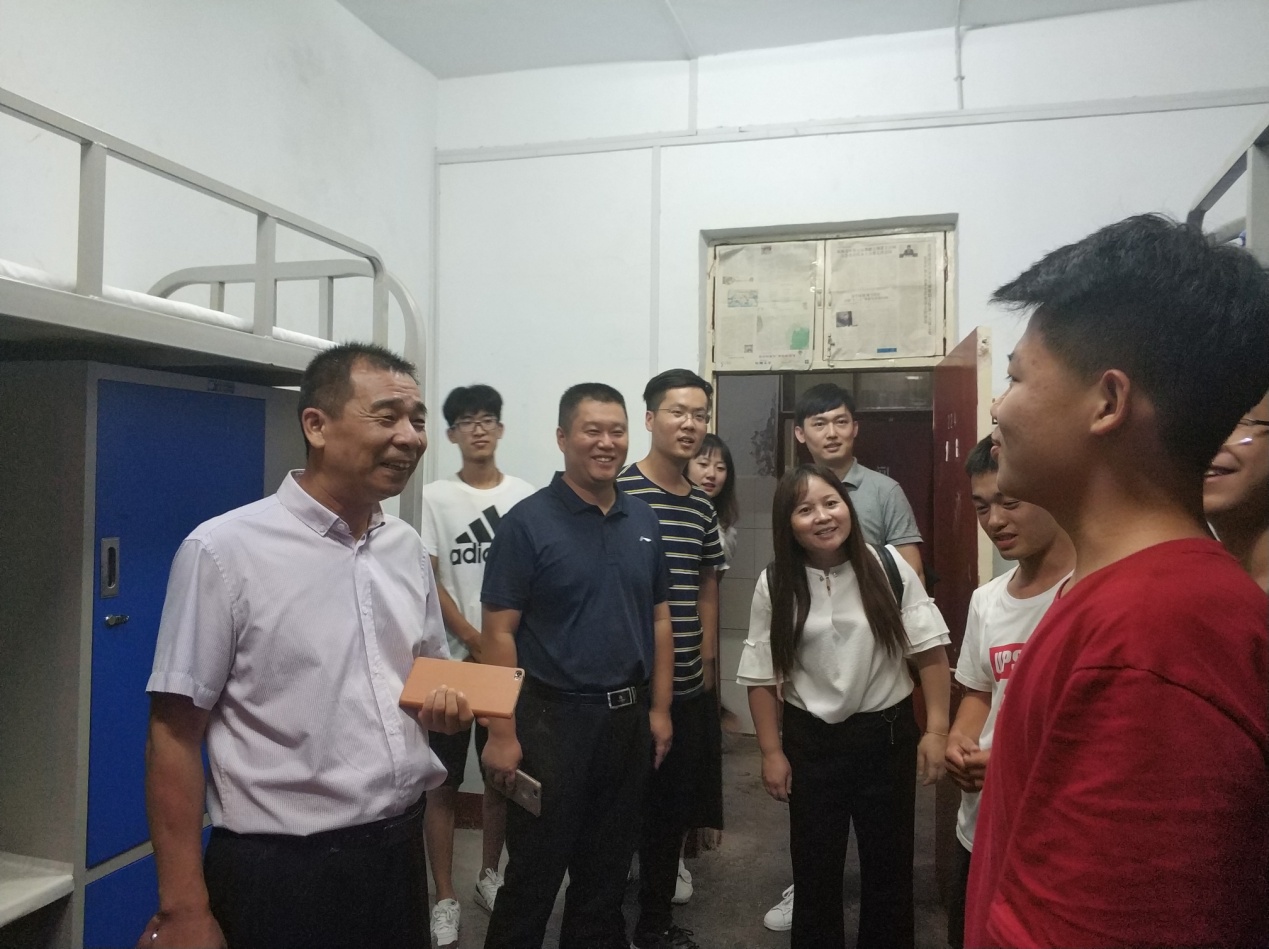 寝室慰问,情暖心扉。为更好地了解新生入校情况,9月9日晚,院党总支书记蒋占峰、副院长吴广飞,2018级中共党史专业班主任冯静、马克思主义理论专业班主任李碧石、辅导员牛昱斐以及2017级学生代表共同前往2018级新生宿舍慰问新生。