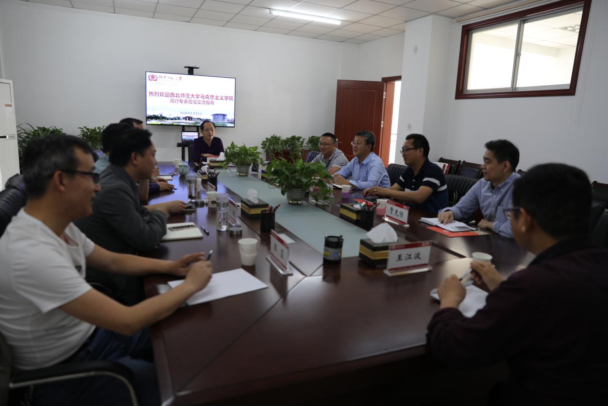 2017年5月23日上午,西北师范大学马克思主义学院党委副书记马科中一行4人莅临我院进行考察交流。考察交流座谈会在院第一会议室举行,马福运院长及相关教师参加座谈,座谈会由院党总支书记蒋占峰主持。