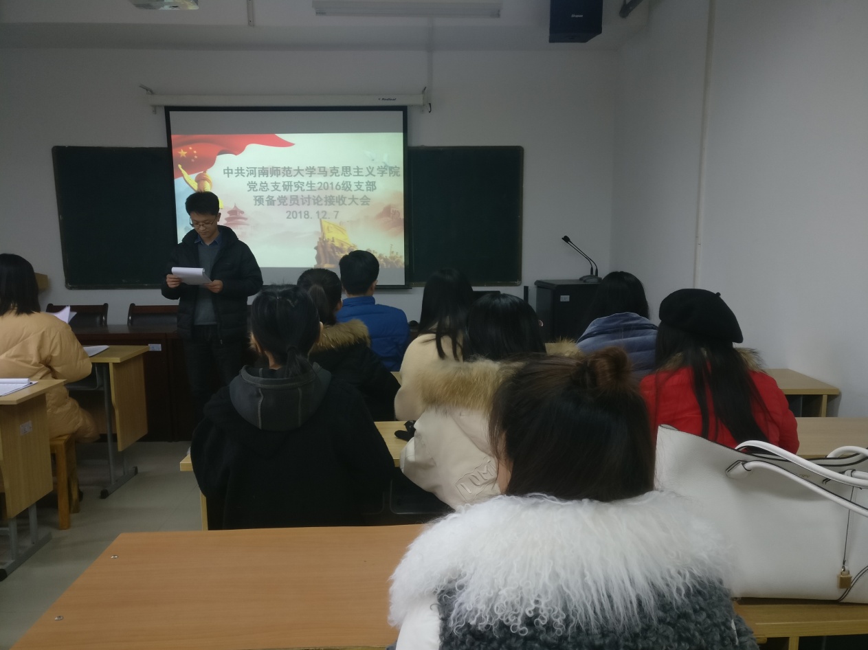 2018年12月07日下午,中共伟德官网下载苹果版马克思主义学院党总支研究生2016级支部委员会了召开关于讨论王林、宋南南、刘真真三位同志的转正会议,2016级研究生党支部共有党员14人,其中正式党员7人,参会6人,超过具有表决权的党员人数的一半,会议有效。