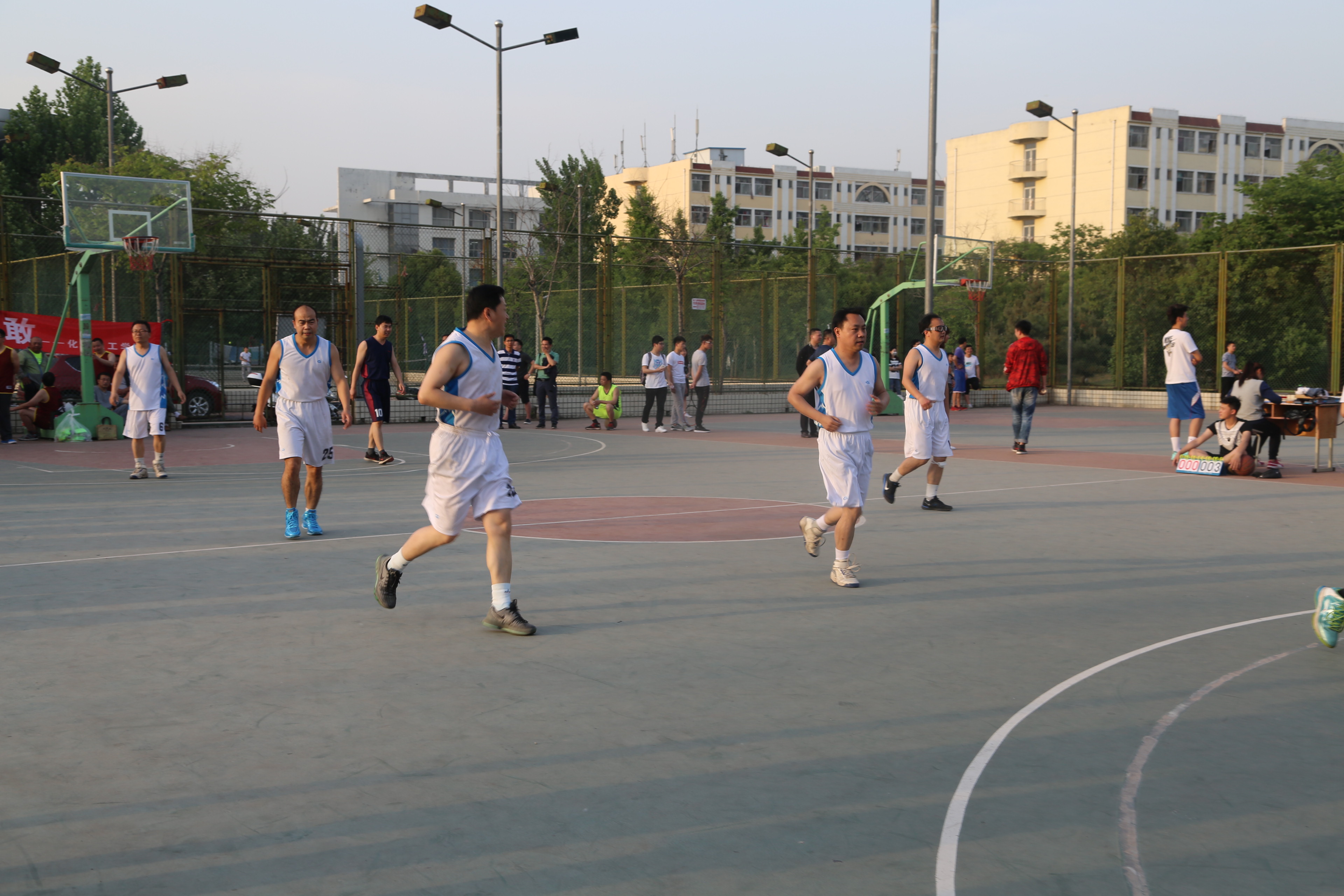 5月2日—9日,我校2017年教工篮球联赛在西区塑胶篮球场正式举行,我院男教工代表队参加了本次比赛。赛前由教练员带领着队员们刻苦训练,积极准备,学院工会为本次比赛提供了及时的后勤保障。