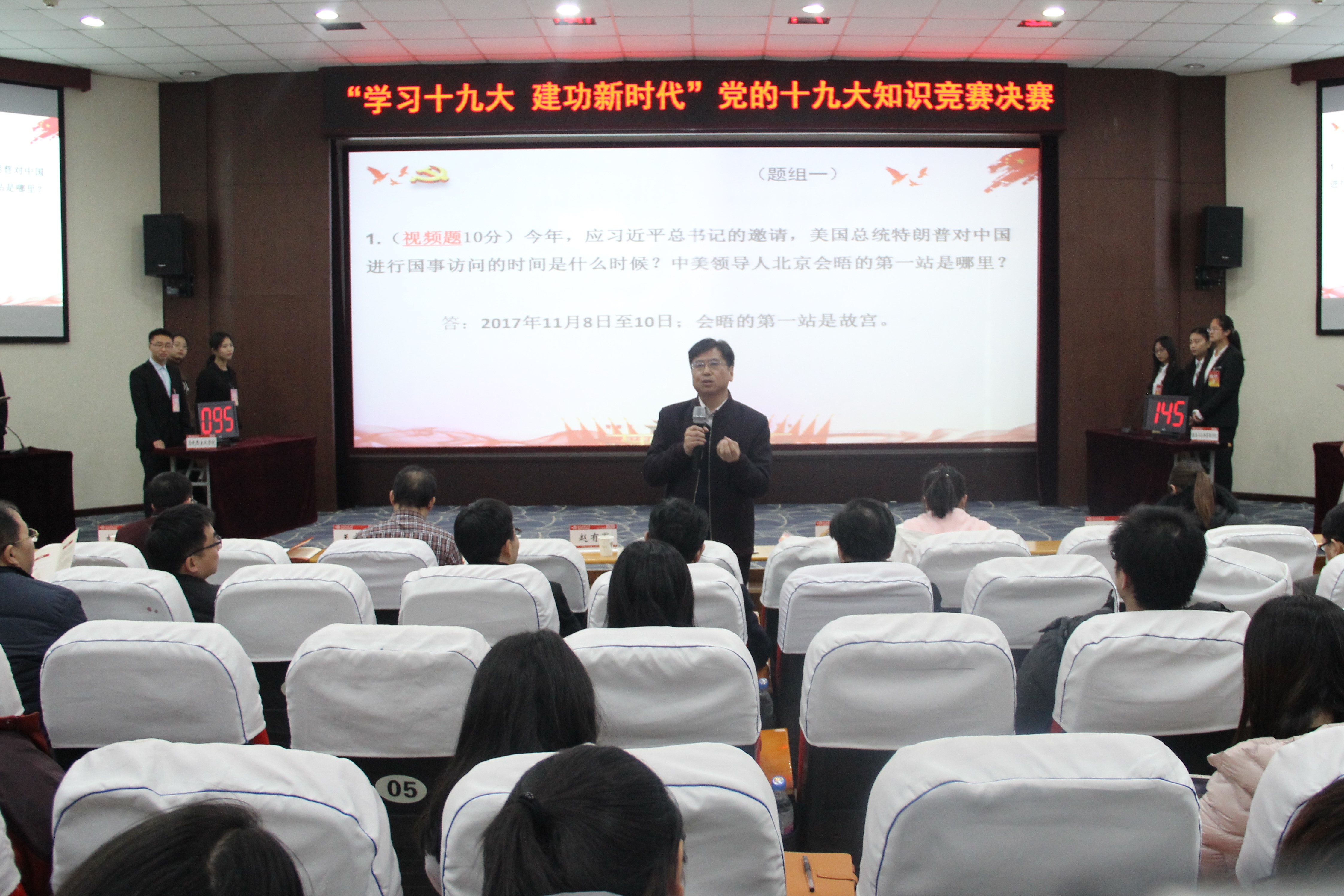 12月21日晚,由党委学工部、党委研工部、校团委主办,马克思主义学院承办的“学习十九大 建功新时代”知识竞赛决赛及颁奖仪式在物理北楼报告厅举行。党委宣传部、党委学工部(处)、党委研工部、校团委等相关部门负责人,马克思主义学院负责人、各学院党委(总支)副书记、带队教师、辅导员及学生代表近300余人参加活动。