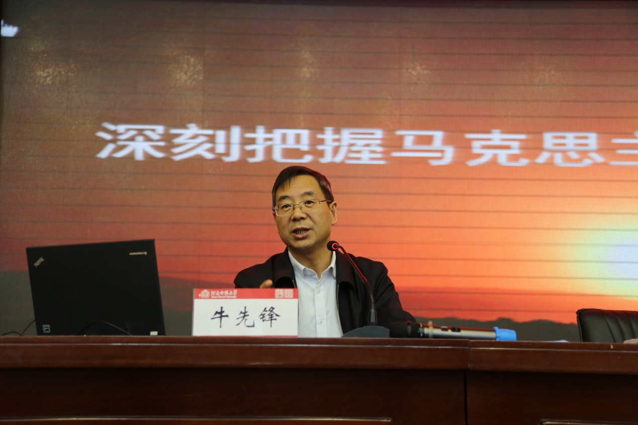 牛先锋教授以“深刻把握马克思主义的理论逻辑”为题,指出我们要从“整体”上搞清楚马克思主义的真正含义,结合历史,结合现实,引经据典,深刻阐释了马克思主义的深刻内涵,同时分别从理论主题、基本方法、逻辑结论三个方面系统讲解马克思主义的理论逻辑。