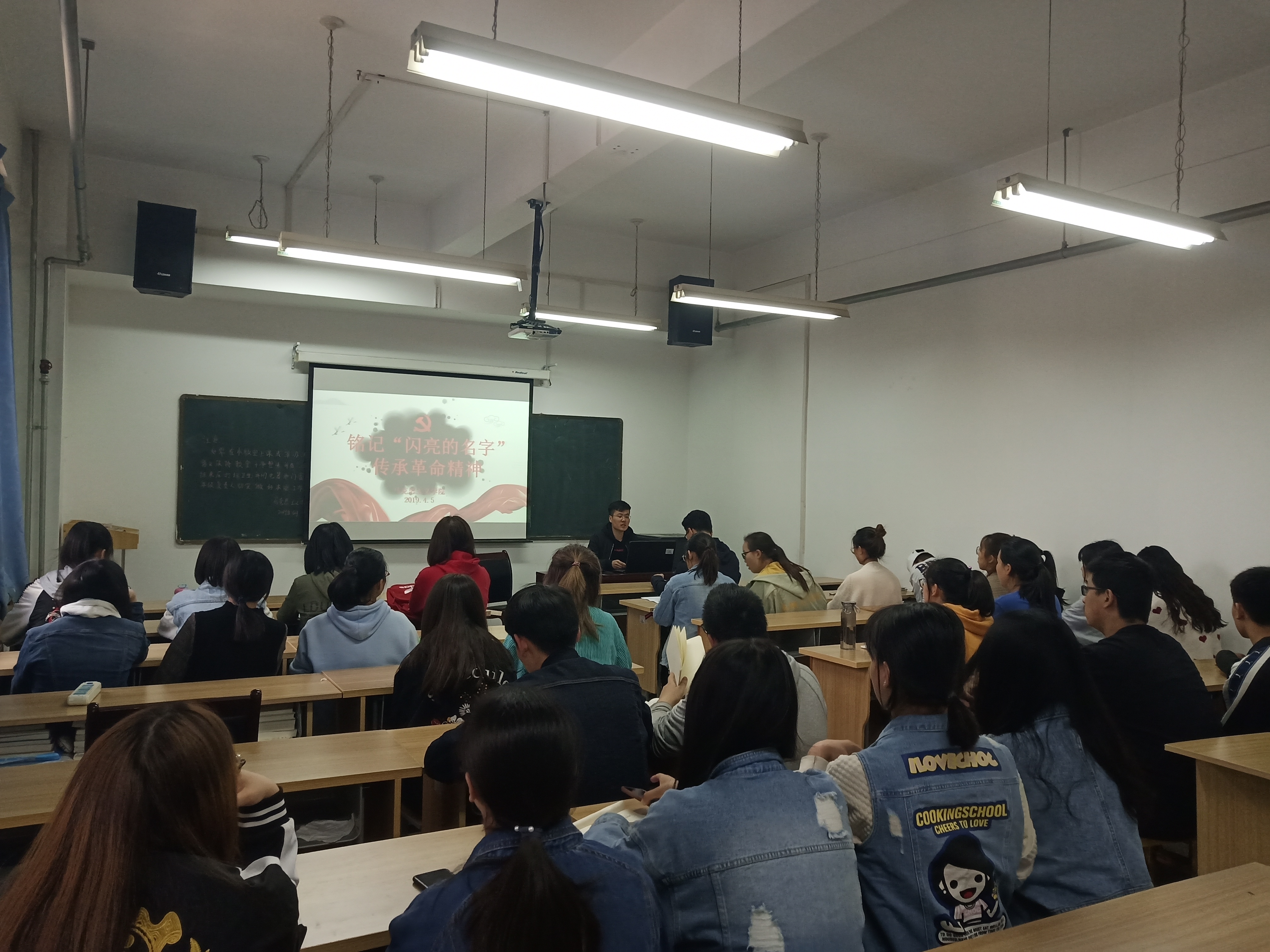 缅怀先烈,致敬英雄。为进一步践行社会主义核心价值观,传承中华民族精神,弘扬社会正气,发挥先烈的引领作用,4月4日,马克思主义学院于第二会议室举办“铭记‘闪亮的名字’,传承革命精神”主题团日活动。本次活动由辅导员牛昱斐主持,学院预备党员、入党积极分子以及学生代表参与其中。