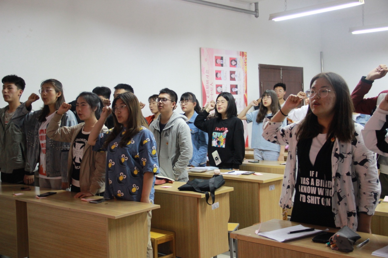 活动在全场齐唱国歌中拉开帷幕,伴着激昂的旋律,每位团员青年都用洪亮而饱满的声音吟唱着,激发着青年不断向上的斗志。接着由18级两位学生代表进行团旗下的演讲,此次演讲主要围绕在新时代继承和弘扬五四精神,争做担当民族复兴大任的时代新人。其中李倩慧同学以《我们都是追梦人》为主题发表演讲,带领同学缅怀五四先驱崇高的爱国情怀和革命精神,引导团员青年重温历史,并激励同学们争做新时代的追梦人。李梦雨同学以《岁月不老,青春不朽;生逢其时,重任在肩》为主题发表演讲,指出作为新时代青年的我们重任在肩,传承五四薪火,展现青春风采,增强听党话、跟党走的思想自觉和行动自觉。随后,团员青年面朝神圣的团旗,紧握右拳、庄重宣誓。重温入团誓词激发了每位团员作为一名共青团员的光荣感和责任感,同时接受了一次思想的洗礼及心灵的震撼。相信在今后的生活中,每位团员青年都会时刻将入团誓词铭记于心并转化为实际行动。最后,此次活动在全场齐唱团歌中落下帷幕。