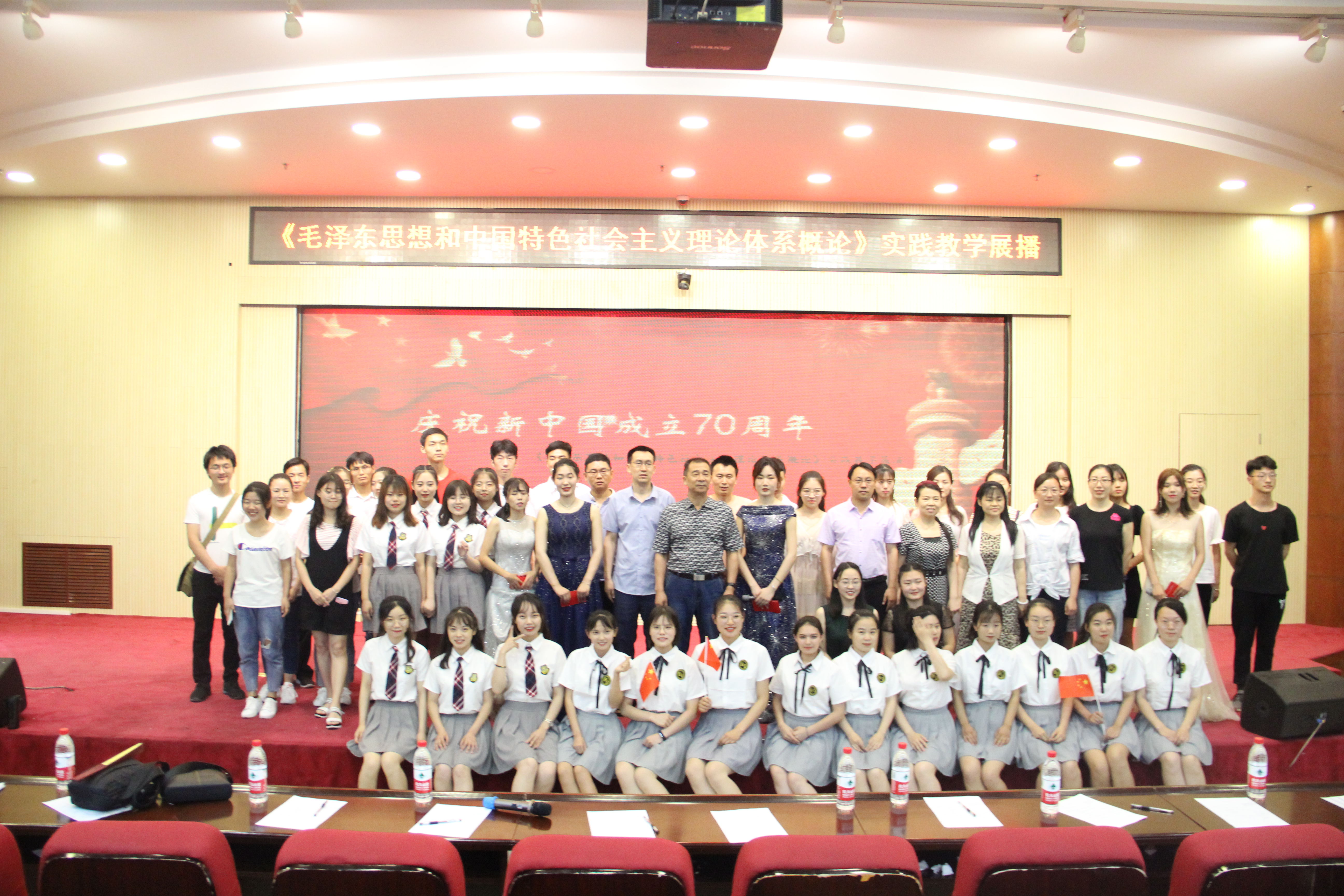 “万里长河披锦绣,千秋功业照光华”,为落实习近平总书记在全国高校思想政治工作会议上的讲话精神,集中展示我校思想政治理论课实践教学成果,促进学生更加深入地掌握毛泽东思想和中国特色社会主义理论体系的科学内涵及精神实质,以献礼“新中国成立70周年”为主题、由马克思主义学院主办的《毛泽东思想和中国特色社会主义理论体系概论》实践教学展演于6月16日下午在思想政治理论课实践教学平台拉开帷幕。本次教学展演得到学校和学院的大力支持,马克思主义学院党总支书记蒋占峰、副院长余保刚、李翔莅临现场指导,《毛泽东思想和中国特色社会主义理论体系概论》课全体教师出席此次展演活动。