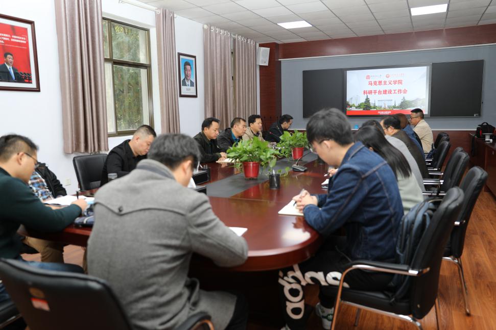 20191030日上午,马克思主义学院在平原楼二楼会议室召开学院科研平台建设工作会。平台秘书、教学秘书、各教研室主任、在校院领导参加,会议由副院长李翔主持。