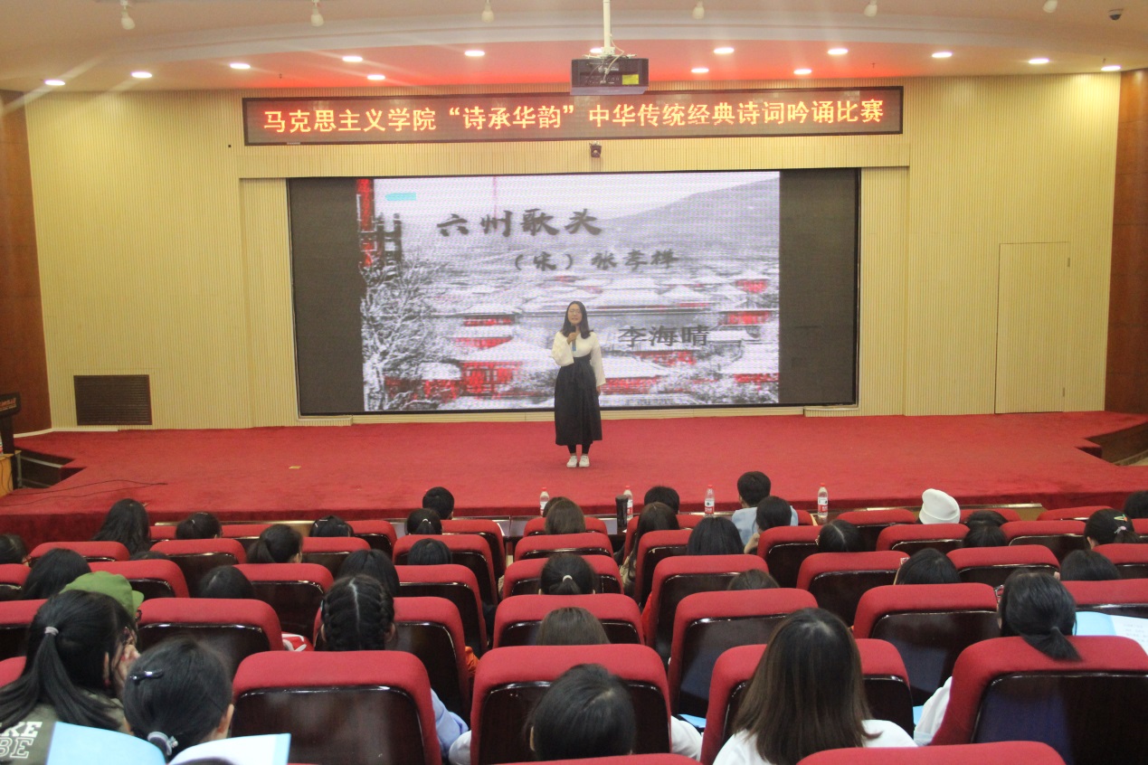 “诵读中华经典,传承华夏文明。”112日晚,马克思主义学院于思想政治理论课实践教学平台举办“诗承华韵”中华传统经典诗词吟诵比赛院级初赛。部分本科生参与其中。