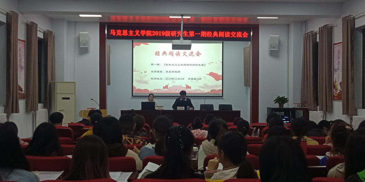 2019年11月5日晚,马克思主义学院“阅读经典,伴我成长”为主题的经典著作阅读交流会在平原楼108会议室举办。本次交流会讨论的书目是《社会主义从空想到科学的发展》,邀请李东明老师担任此次点评嘉宾。辅导员牛昱斐、2019级全体硕士研究生、博士研究生参加了本次交流会。