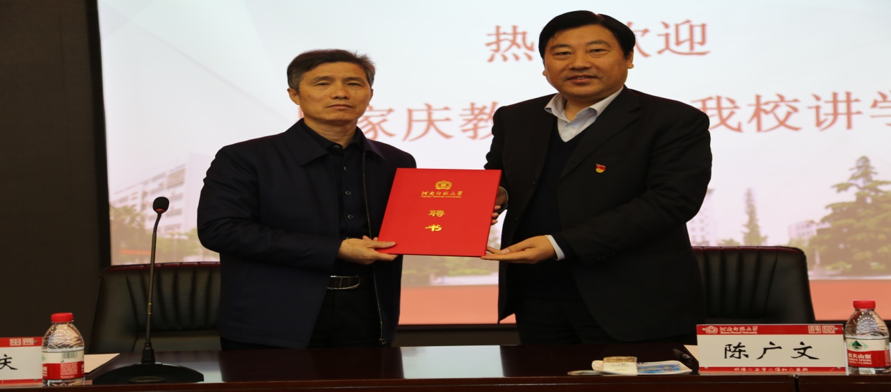 2019年11月14日上午,广西大学博士生导师吴家庆教授应邀莅临我校讲学。讲座在东校区思想政治课实践教学平台举行,马克思主义学院教师、博士生、硕士生和本科生200余人参会。报告开始前,伟德官网下载苹果版党委副书记陈广文教授代表学校向吴家庆教授颁发伟德官网下载苹果版兼职教授聘任证书。