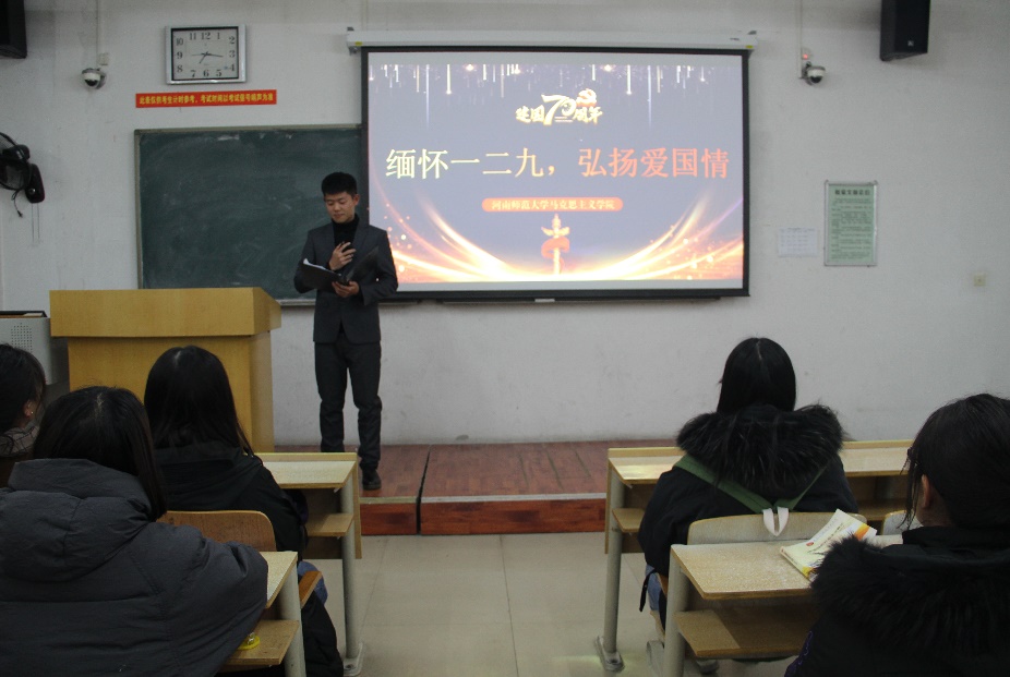 12月15日,马克思主义学院于东区教学楼101教室举行了“缅怀一二·九,弘扬爱国情”主题团日活动,本科生辅导员牛昱斐及部分学生代表参与其中。
