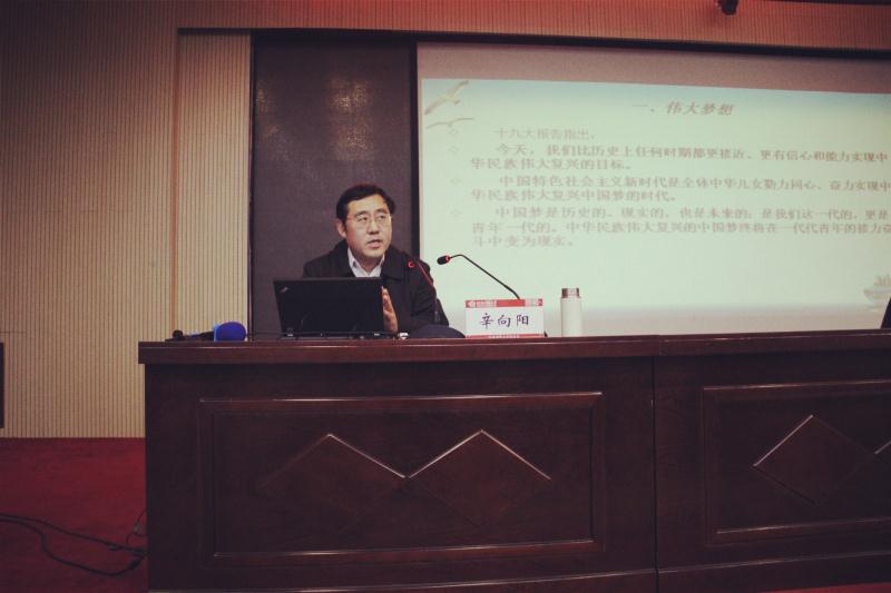 辛向阳研究员从十九大报告精神出发,以五个故事为切入点,深入剖析了中国梦的内涵与特征,并从历史基础、当今现实等方面重点讲解了伟大梦想、伟大斗争、伟大工程、伟大事业的科学内涵和逻辑关系。他以丰富的史料、严谨的论证和生动的讲述,明确了中华民族伟大复兴的历史目标与责任,使在座师生在深入理解四个伟大的同时,也更加坚定了中国特色社会主义的道路自信、理论自信、制度自信和文化自信。