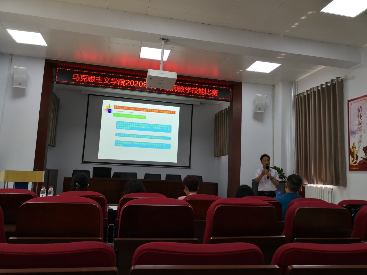 为深化教学改革,鼓励教师积极投身教学工作,搭建教师互相交流、学习和展示教学技能平台,进一步提高我院教学质量,根据省工会、省教育厅《关于开展2020年河南省教学技能比赛第一阶段比赛的通知》要求,2020年7月6日,马克思主义学院在平原楼108举行教师教学技能大赛,来自概论、原理、基础、纲要、形策教研室10名教师参加最终决赛。