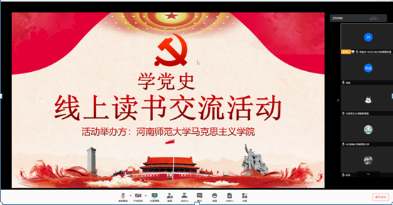 为深入学习贯彻落实习近平总书记关于党史、新中国史、改革开放史、社会主义发展史学习及新冠肺炎疫情防控工作的重要讲话和指示精神,持续深化爱国主义教育,马克思主义学院于7月4号上午举办“学党史”线上读书交流活动。