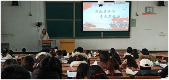 为积极响应国家有关征兵工作的号召,做好2021年大学生征兵宣传工作,鼓励大学生积极应征入伍,1月7日上午,马克思主义学院在求是中楼103教室举办“热血染芳华,青春卫祖国”征兵政策宣传会。2019级辅导员和2019级全体本科生参与其中。