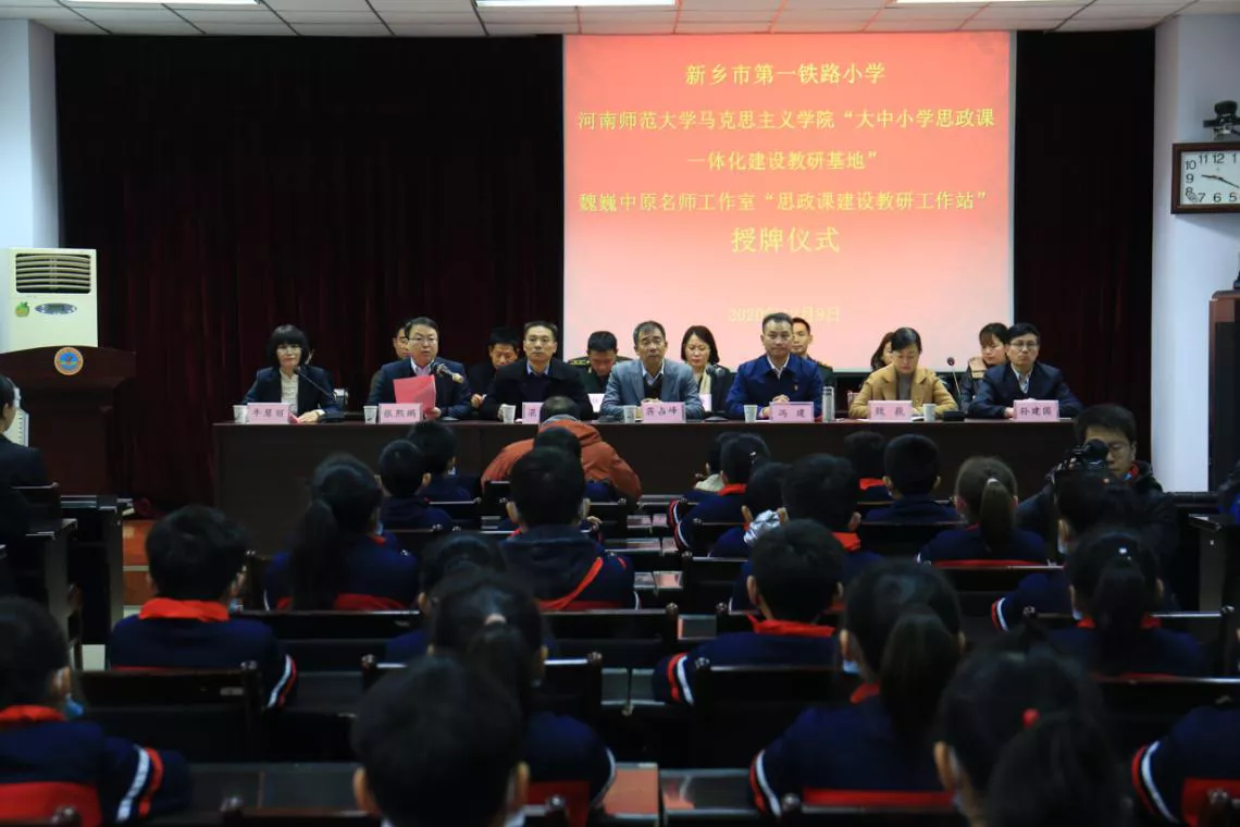 2020年12月9日,伟德官网下载苹果版马克思主义学院“大中小学思政课一体化建设教研基地”、魏巍中原名师工作室“思政课建设教研工作站”授牌仪式在新乡市第一铁路小学举行,院长蒋占峰、新乡市教育局副局长冯建、河南省中原名师魏巍及卫滨区文明办、铁一小共建部队等单位代表人员出席。
