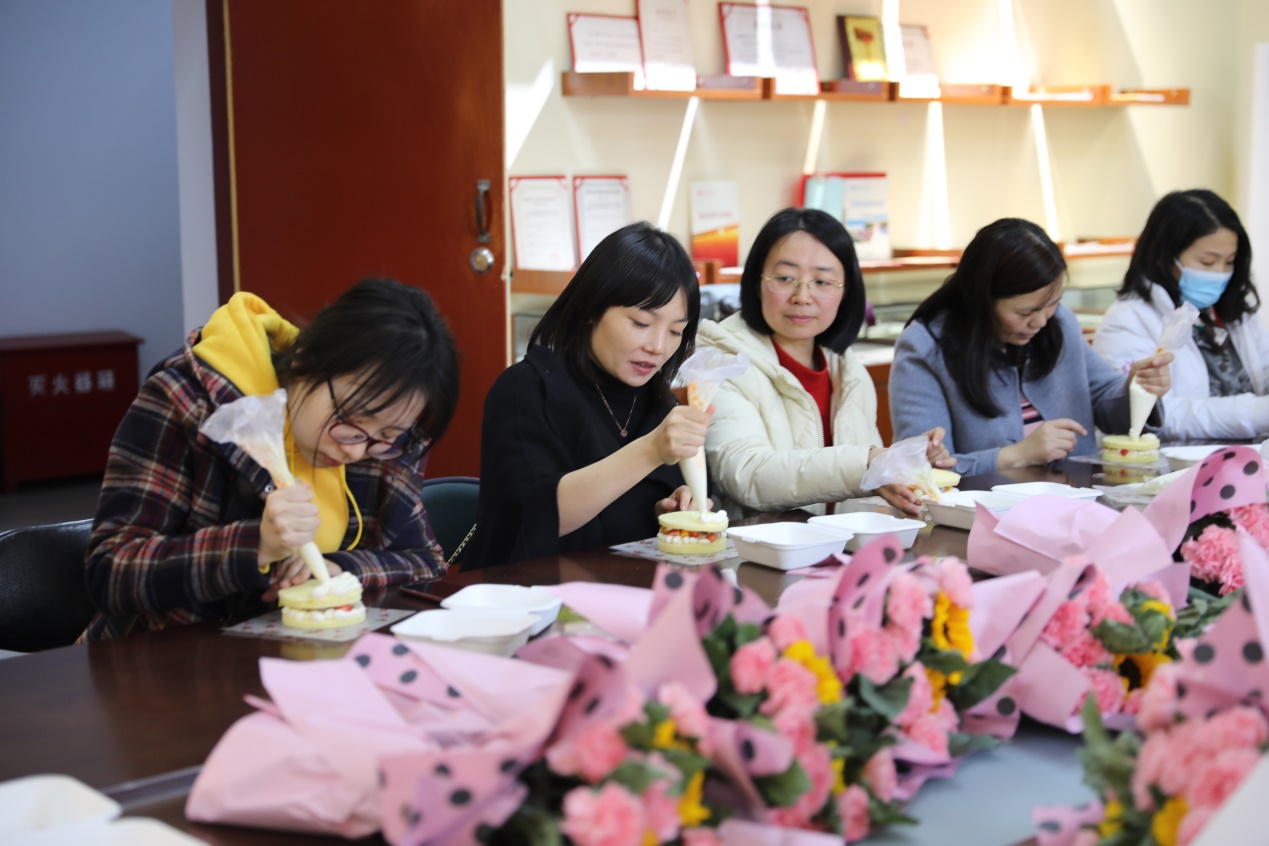 3月23日,我院工会在平原楼108会议室开展了女职工“蛋糕制作”活动,全院女教工分为两组,在拾贰约蛋糕坊专业人员的指导和帮助下,参加活动的老师们依照程序先后做好奶油、蛋糕坯,并添加水果和糖霜,制作出一个个秀色可餐的美味佳品。