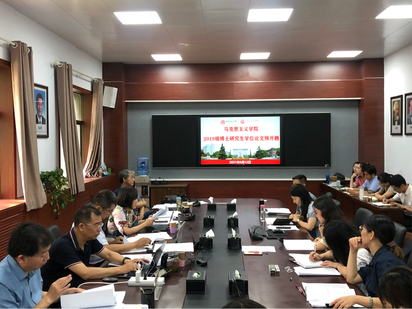 2021年6月12日上午,马克思主义学院在平原楼201举行了2019级博士研究生预开题。参与本次预开题的有华东师范大学闫方洁教授、天津师范大学李朝阳教授以及马克思主义学院博士生导师蒋占峰教授、马福运教授、聂立清教授、苏全有教授等六位专家,预开题由马福运教授主持。