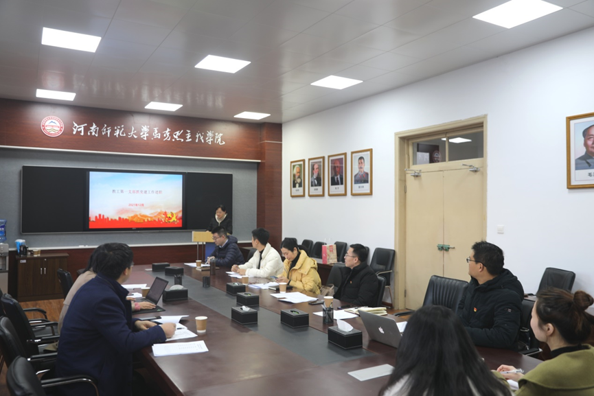 为深入学习贯彻习近平新时代中国特色社会主义思想和党的十九届六中全会精神,进一步落实《中国共产党支部工作条例(试行)》,根据校党委统一安排部署,2021年12月30日,马克思主义学院2021年度党支部书记抓党建工作述职评议暨“五星级党支部”考评工作会议在平原楼201会议室召开。学院党委委员、支部书记、支部委员、党员代表参加了会议。会议由院党委书记马二杰主持。