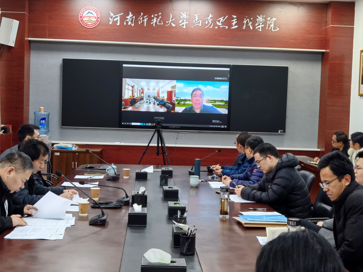 1月9日下午,马克思主义学院召开2022年国家社科基金论证会。此次论证会采取线上(腾讯会议)和线下(平原楼201)相结合的方式进行,国家社科基金会评专家、国务院学位委员会马克思主义理论学科评议组成员、教育部长江学者特聘教授王永贵作为校外专家出席会议,马克思主义学院蒋占峰教授、聂立清教授、孟轲教授作为校内专家出席会议,申报教师代表近20人参加了会议,会议由副院长余保刚主持。