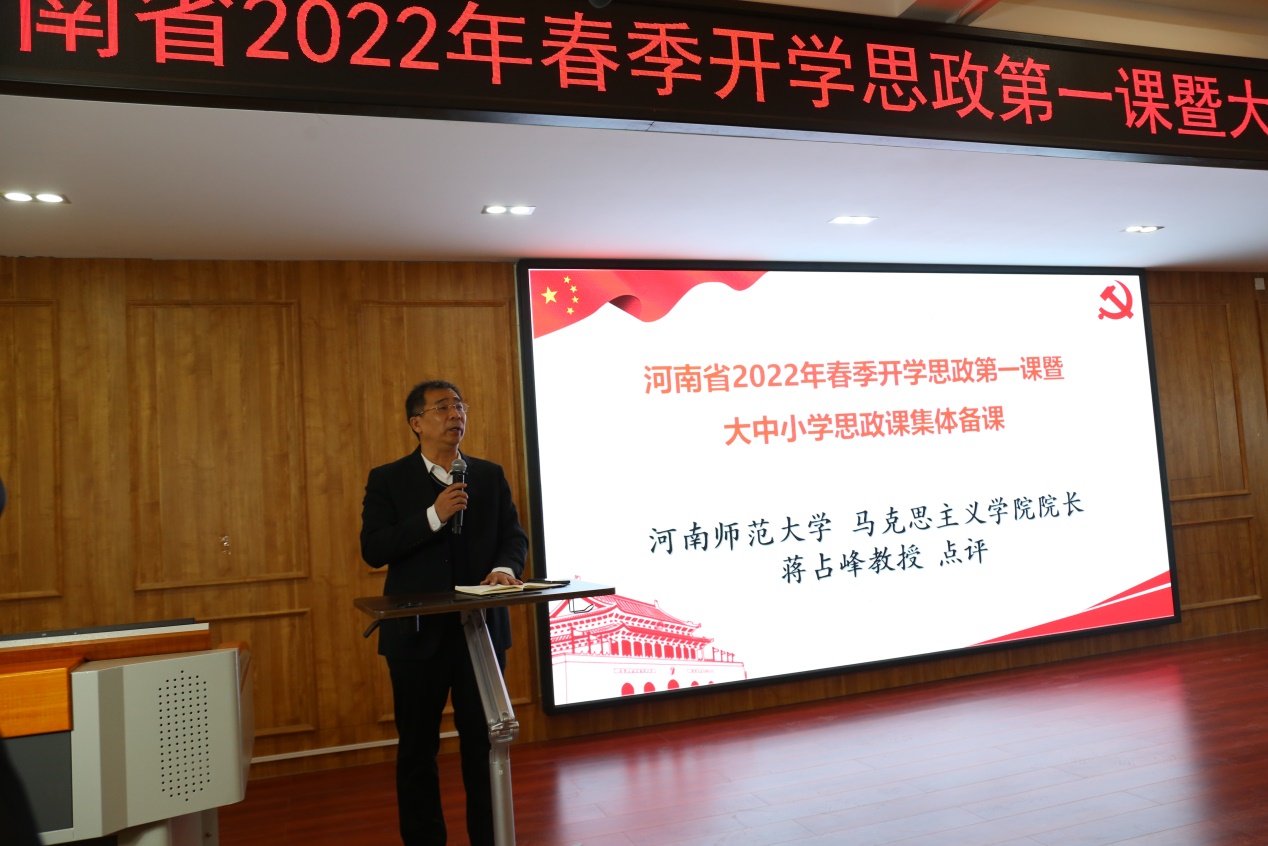 2月28日上午,由中共河南省委教育工委、河南省教育厅主办,商丘师范学院和商丘市教育体育局承办的以“讲好冬奥故事,砥砺奋进力量”为主题的2022年春季开学思政第一课暨大中小学思政课集体备课活动正式开课。河南省大中小学思政课一体化建设指导委员会专家组组长、我校马克思主义学院院长蒋占峰教授受邀参加并担任点评嘉宾。