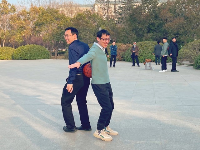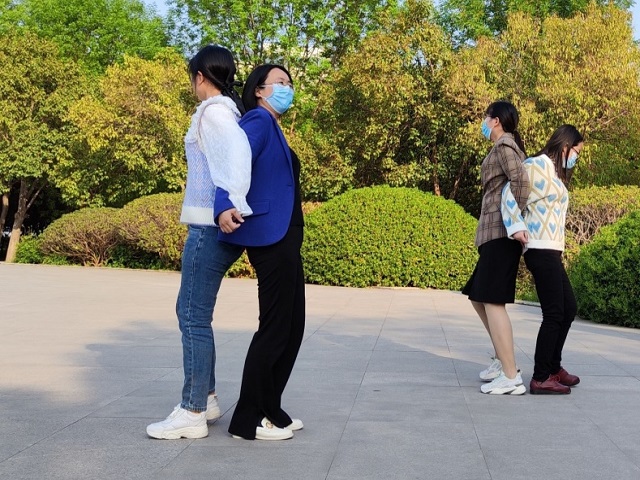 随着裁判一声令下,加油声随之响起,与此同时赛场上出现了各种有趣的现象,引来老师们一阵又一阵开心的笑声。有的参赛选手追求速度,两个人大踏步前进,结果因为没有掌握好平衡,导致篮球落地,失去比赛资格,有的则移动非常缓慢,以致于被其他选手远远抛在后边,那些身手不凡的则是赢得了围观者的欢呼和叫好。最终老师们用背靠背默契的合作完成了比赛,每个人的脸上都洋溢着灿烂的笑容。