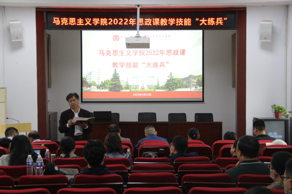 为深入学习贯彻习近平总书记关于思想政治理论课重要讲话精神,提升马克思主义学院思政课教师教学技能,营造全员参与、争当名师、提高水平的思政课教学氛围,4月26日下午,马克思主义学院在平原楼108室举办思政课教学技能“大练兵”活动。教务处处长聂国兴,校教学督导赵有军、王晔、李庆广,学院领导班子成员、全体思政课教师参加。活动由教学副院长曲嘉主持。