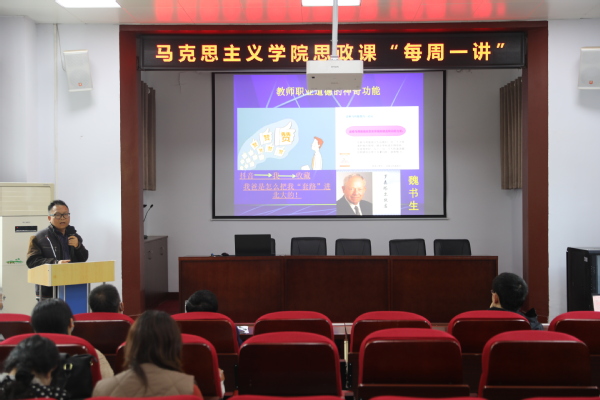 4月19日下午,马克思主义学院思政课“每周一讲”在平原楼108会议室举行,学院领导班子成员、全体思政课教师参加。