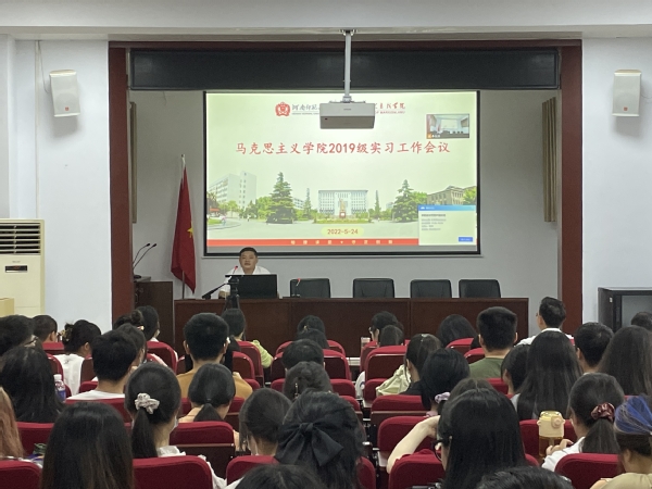 5月24日下午,马克思主义学院于平原楼108会议室召开2019级本科生暑期实习工作会议。此次会议通过线上线下结合的方式进行,由马克思主义学院副院长曲嘉主持。实习指导教师、辅导员及2019级全体本科生参加。