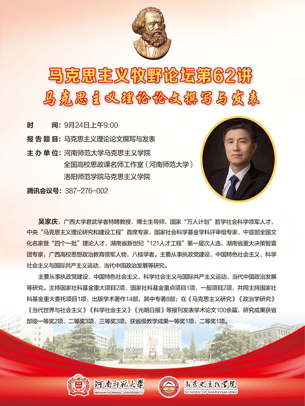 马克思主义牧野论坛 广西大学吴家庆教授讲学通知