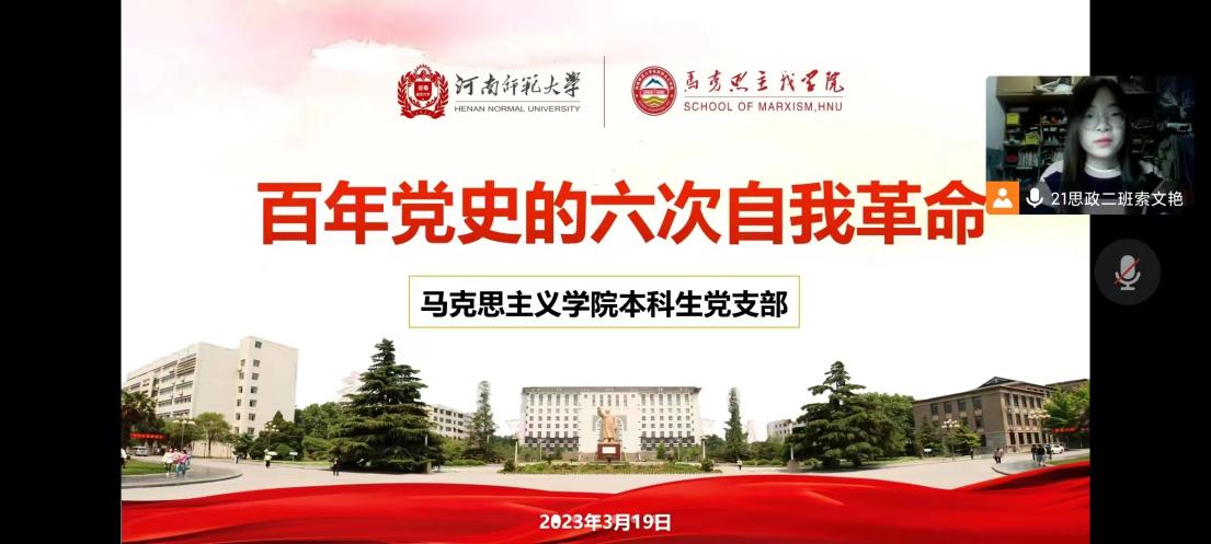 为了进一步学习中国共产党历史,理解和把握百年党史中最具历史意义的六次自我革命,领悟和践行自我革命精神,马克思主义学院本科生党支部于3月19日开展“学习百年党史,践行自我革命”主题党日活动,支部全体党员参加。