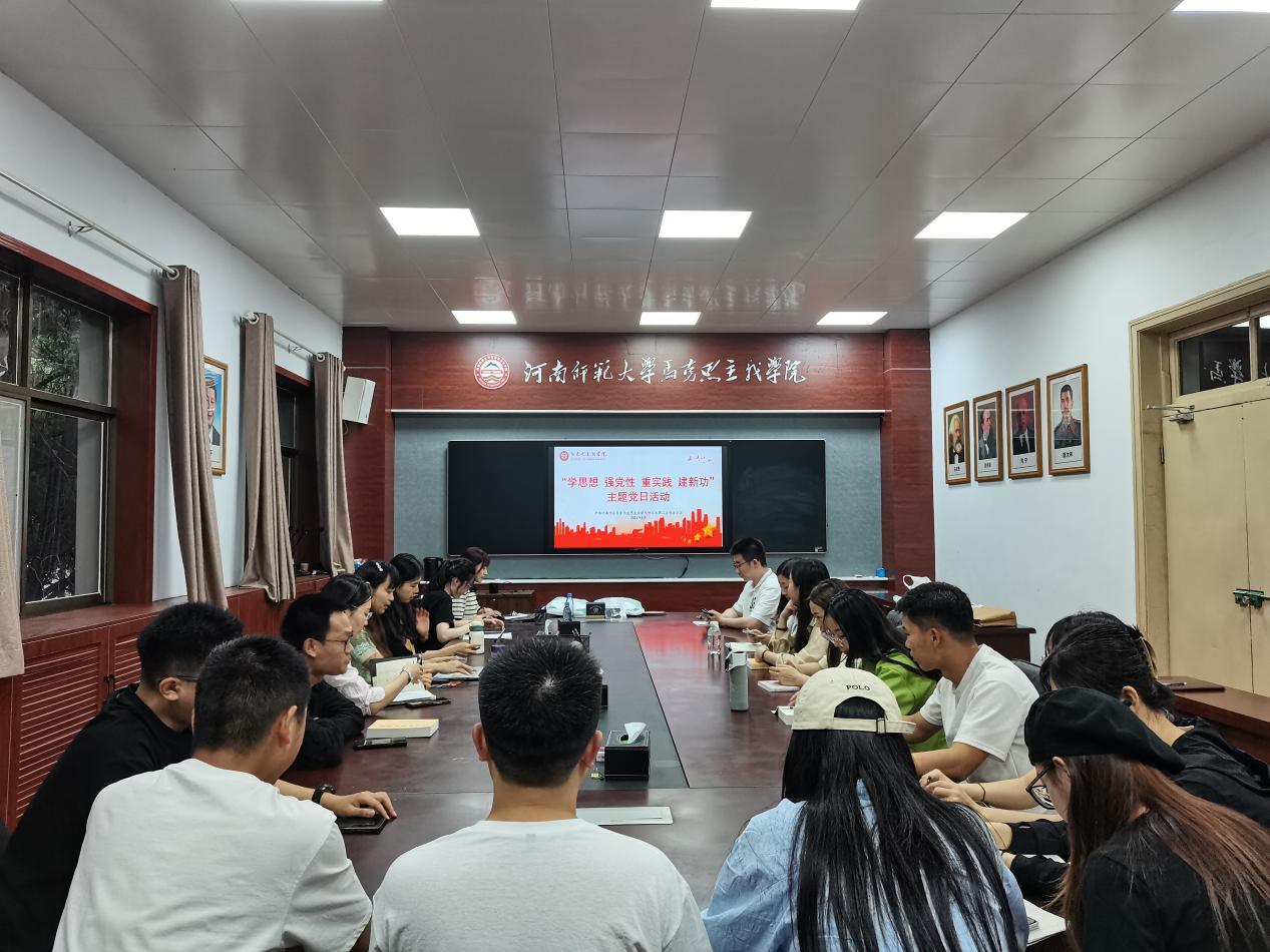 为深入学习贯彻习近平新时代中国特色社会主义思想主题教育,全面贯彻落实党的二十大精神,将学习成果转化为党员学习的强大动力和工作实效,2023年5月25日,马克思主义学院研究生第二党支部在平原楼201开展了以“学思想 强党性 重实践 建新功”为主题的党日活动。