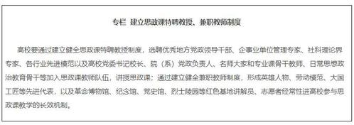 14.建设专兼结合的师资队伍。各地各校严格按照要求配备建强高校专职思政课教师、辅导员队伍,提高中小学专职思政课教师比例,实行思政课特聘教授、兼职教师制度,积极聘请党政领导、科学家、老同志、先进模范等担任思政课兼职教师。深入实施马克思主义学院院长(书记)培养工程,通过集中培养培训、委托重大项目、加强实践锻炼、开展国际国内访学等方式,培养一批青年马克思主义理论家。