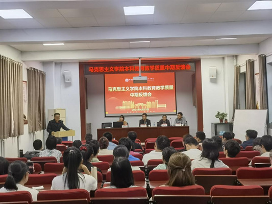 4月23日下午,马克思主义学院本科教育教学质量中期反馈会于平原楼108召开,马克思主义学院领导班子、校督导组成员代表、同行督导组成员代表、马克思主义学院全体思政课教师、部分学生代表参加反馈会,会议由曲嘉副院长主持。