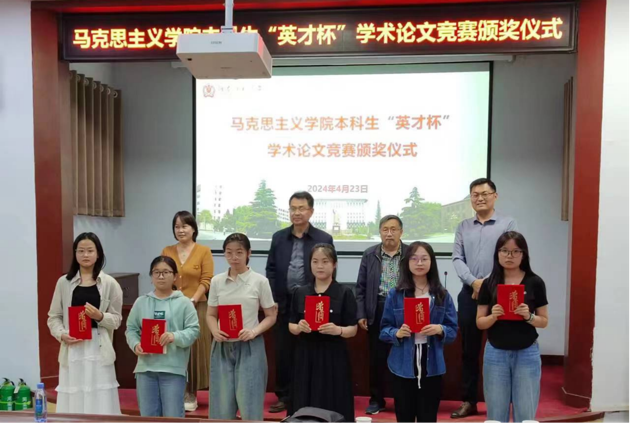 同行督导组成员代表冯思淇老师从专职教师与兼职教师、青年教师与老教师、专业课与公共课三个层面进行分析阐述,指出马克思主义学院教师要向八个相统一的要求靠拢,不断增强知识能力,改进讲授方式,依据学生情况、课程要求,磨练自身教学水平。之后,四位校督导组成员代表为马克思主义学院本科生“英才杯”学术论文竞赛获奖同学颁发证书并合影留念。曲嘉副院长对四位专家的点评表示感谢,并表示讲深思政课道理关键在教师,马克思主义学院将及时根据校级督导提出的意见改进教学方法,提高教学质量。