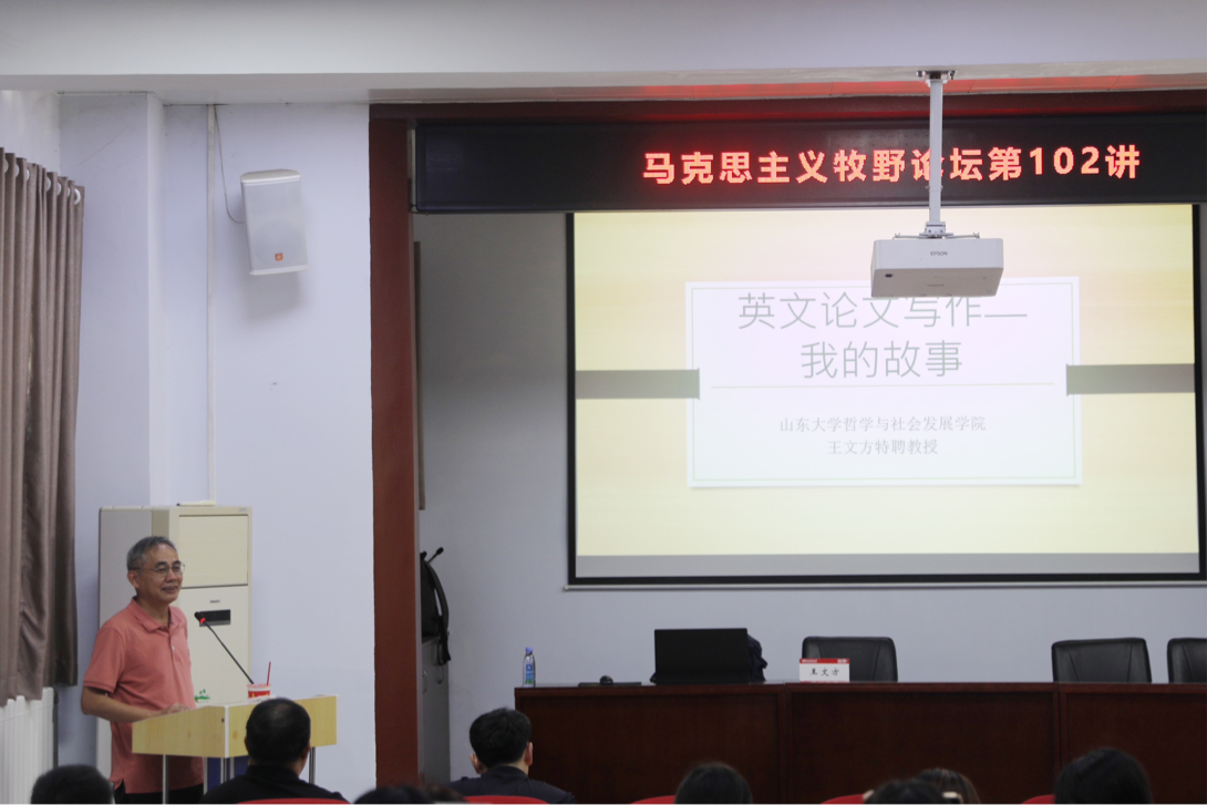 4月26日上午,山东大学王文方教授为马克思主义学院师生作题为“英文论文写作——我的故事”的学术分享。这也是伟德官网下载苹果版马克思主义牧野论坛第102期。讲座在平原楼108举行。马克思主义学院教师代表和全体硕博研究生参加了此次讲座,此次讲座由马克思主义学王聪老师主持。