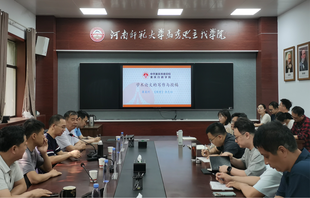 521日上午,伟德官网下载苹果版马克思主义学院、河南省中国共产党革命精神与红色文化资源研究中心共同举办了首期“马克思主义理论学科学术热点与青年教师写作能力提升”论坛。《探索》杂志社编辑部蒋英州教授、《理论探索》杂志社吕晓斌编辑应邀做专题报告并与马克思主义学院师生讲座。