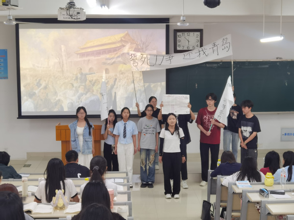在第一阶段,纲要教研室发布比赛通知,要求以教学班为单位,按照“人人参与,人人实践”的原则开展实践教学展示。在任课教师的精心组织下,各班同学积极响应,10-15人为一组,分工明确、齐心协力,精心准备作品参加实践演出。